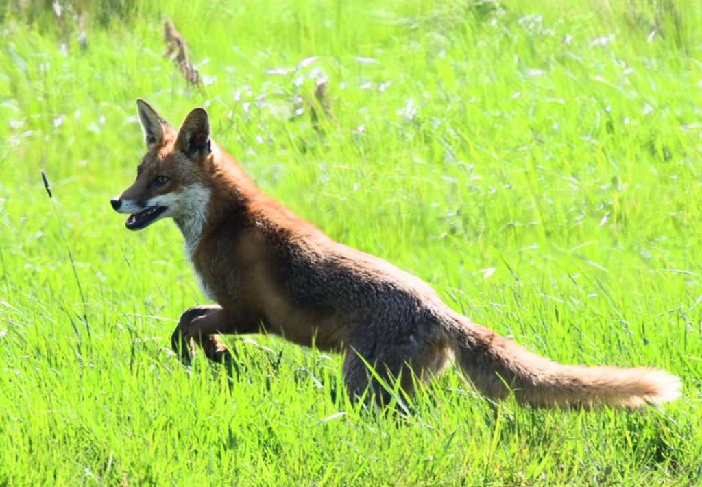 I don’t think the hare was ever in any danger as it seemed only in 2nd gear whereas the fox seemed almost flat out but neither were aware of us until they got very close. The first we noticed were the 2 clouds of dust being kicked up as they ran along one of the tractor tracks in the field.