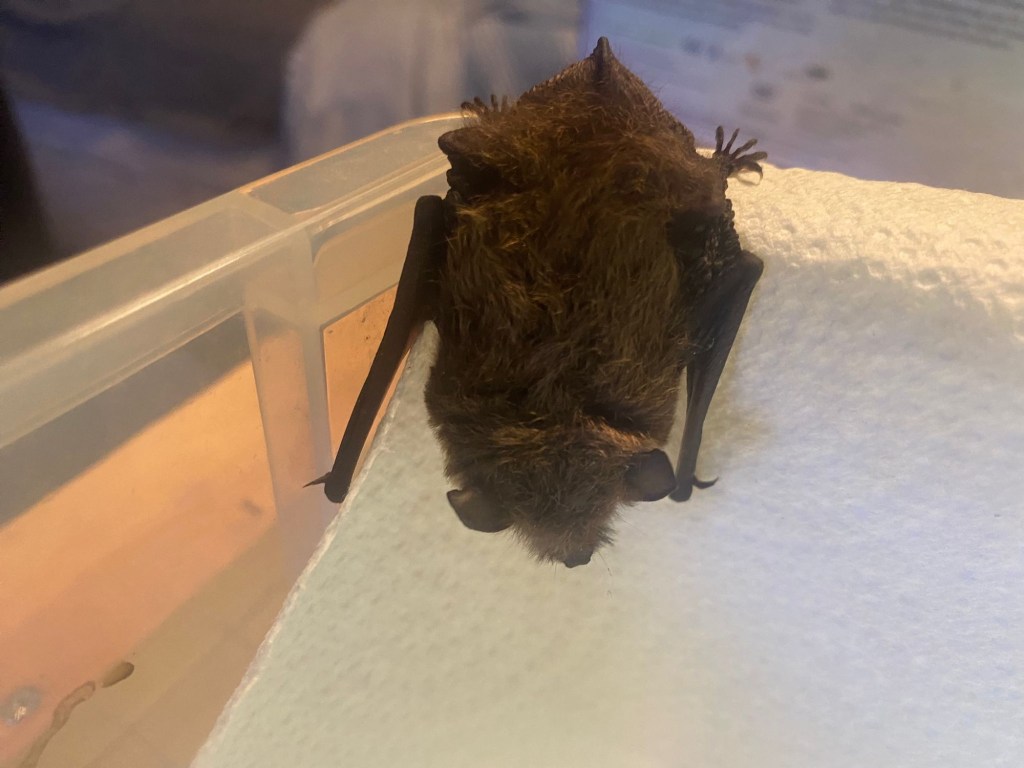 Before I go, I’d like you to indulge me while I tell you about something that I was involved in yesterday that’s nothing to do with ospreys. I was sitting at home and suddenly saw something clinging to an outside wall of my house. I went to have a look and discovered a bat. Luckily, we have a wildlife rehabber in the next village who is particularly knowledgeable about bats. He advised that it being out in the day meant it probably needed rescuing, so I got a ladder out and, wearing gloves (a sensible move when you look at its teeth in the second photo!) and handling it with a cloth, I managed to get it into a box and down to the rehabber. He told me that it was a whiskered bat, one of the rarest species in Scotland, and he will keep it to rehydrate it and get it back to a healthy weight, before releasing it back here. I was really pleased to do my little bit to help this tiny creature. Fingers crossed it makes a full recovery and can be released quickly.