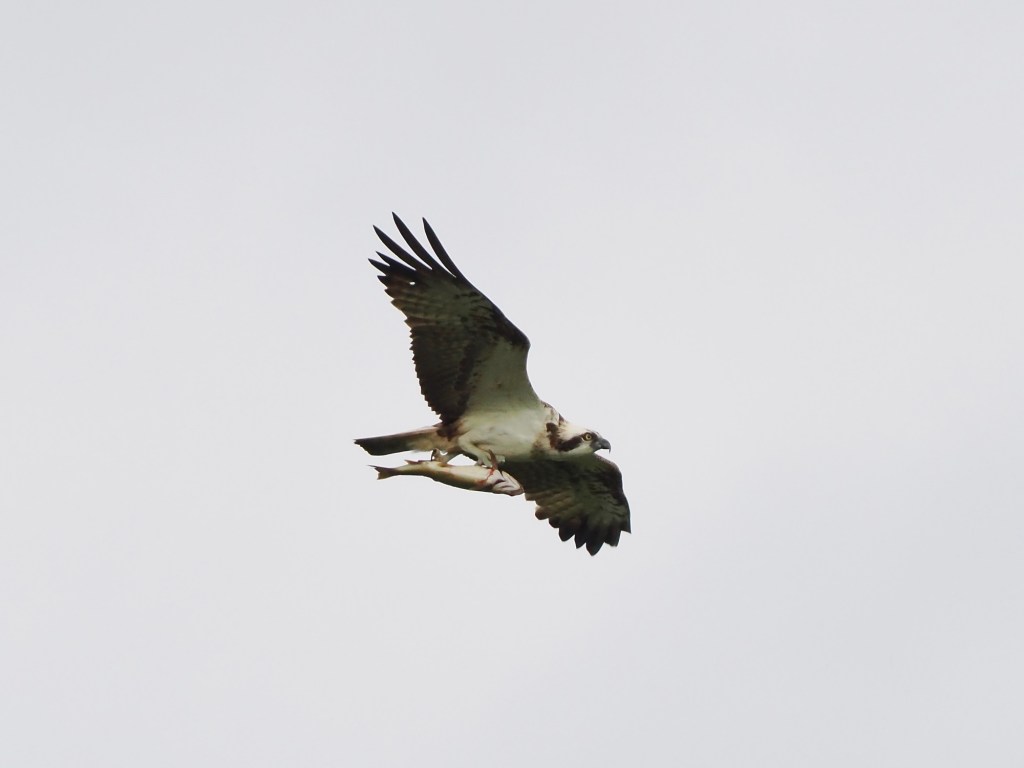 Augusta left the area several weeks ago. She hasn’t been seen on any other nests, unlike last year, but I’m just assuming she is now well on her way to, if not arrived at, her wintering grounds. However, the rest of the family are still around. I saw all 3 birds yesterday and C2 seems to have caught up with getting his share of the food being provided. This is a mixed bit of news. It’s great that he’s now well fed but he’s managing to do that by staying close to the nest so he can see Samson coming and can grab the fish before C1 gets there. That means that he is not flying around and familiarising himself with the area or practising his fishing technique as much as perhaps he should. C1, on the other hand, is often not seen for several hours but is usually back for the mid afternoon fish delivery/deliveries.