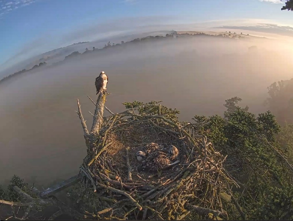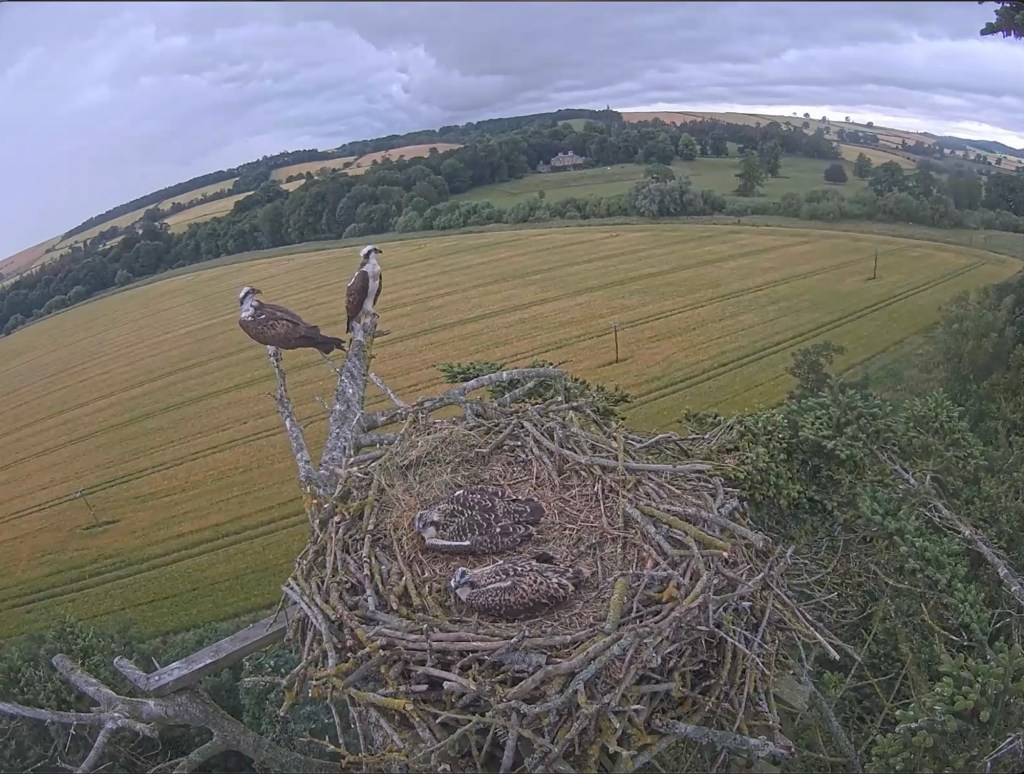 Samson will continue to bring food in but the big change will be that Augusta will start to disengage herself from her nest duties and will start fishing for herself to build up strength for her migration. She will probably only have a couple more weeks here before setting off to begin her journey south. I imagine she will go directly this time, unlike last year where she spent about a month loitering around the Tweed area before being seen at Foulshaw Moss nest in Cumbria on 2 Sep where she was hoping (but failed) to persuade the male there to feed her. In the meantime, the youngsters will build up their strength and flying skills and will get to know the area as well as hone their instinctive abilities to fish. Now is a great time to look for ospreys as the fledgling birds will all be doing the same thing and so there will be far more ospreys than usual on the wing and around stretches of water. So if you are lucky enough to live around an area where ospreys are known to be, keep your eyes to the skies and your ears open for their characteristic calling.