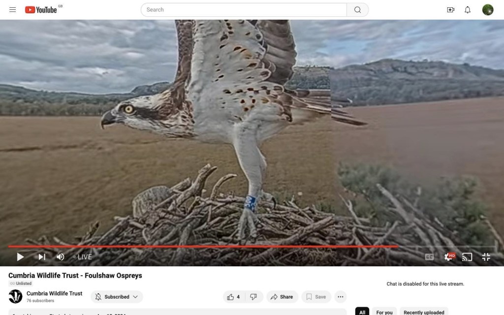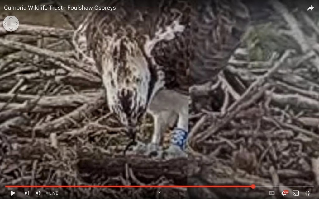 However, imagine my surprise when a friend sent me some photos, taken this afternoon from a nest at Foulshaw Moss, in Cumbria, showing a very familiar figure intruding just before 4pm, until she was driven off by the resident male. It was Augusta! Screenshots are all taken by Mary Cheadle and the webcam is courtesy of Cumbria Wildlife Trust.