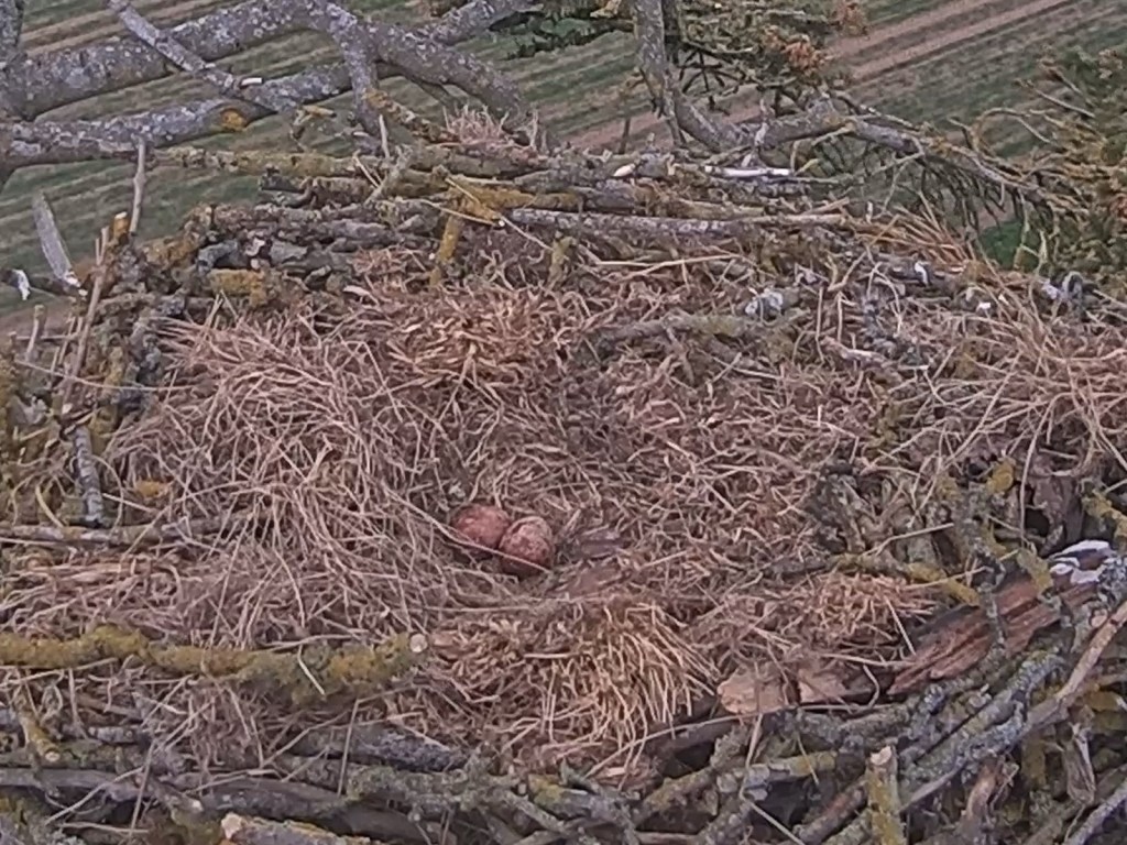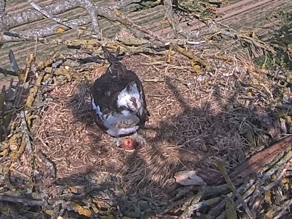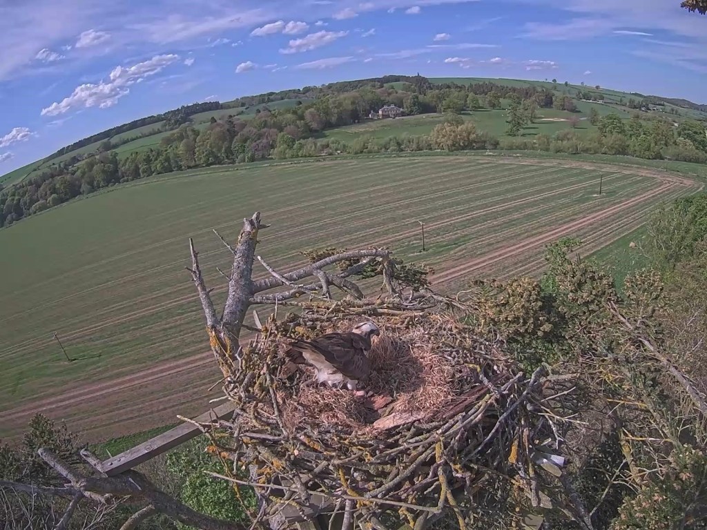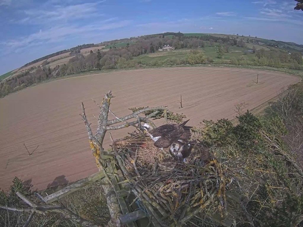 The third egg is due on Tue and I expect that will be the completion of the clutch. Occasionally, a female will lay 4 eggs but that is usually when nests have a guaranteed good supply of fish and, as regular readers will know, that has not been the case with this nest. Nevertheless, things are looking better so far this year as far as fish supplies are concerned, so fingers crossed that remains the case. We then will settle in for the long wait on incubation with hatching not due until the first two weeks of Jun.
