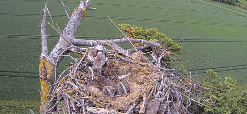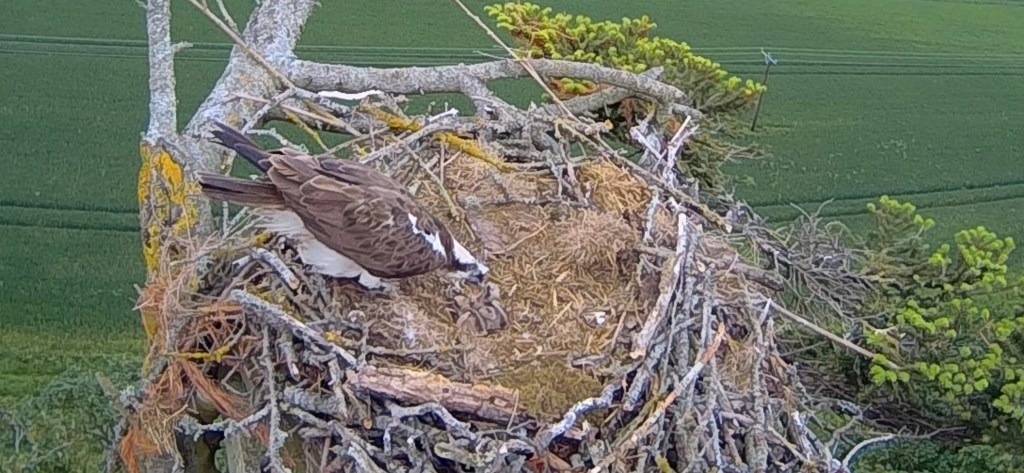 Since the family disappeared on migration last year, we had the sad news that the Born in Scotland restaurant and shop were to close and they remain closed. So there will be no opportunity to refresh yourself with coffee and cake or something more substantial while watching the view from the nest camera on the monitor in the restaurant. I am looking at various options at providing that view to the public, via a 4g router for example, but the costs of that and an internet link are prohibitive at present. Nevertheless, people can still walk down by the river and we will be in our normal position to provide information and allow people to view the nest with binoculars and scope.